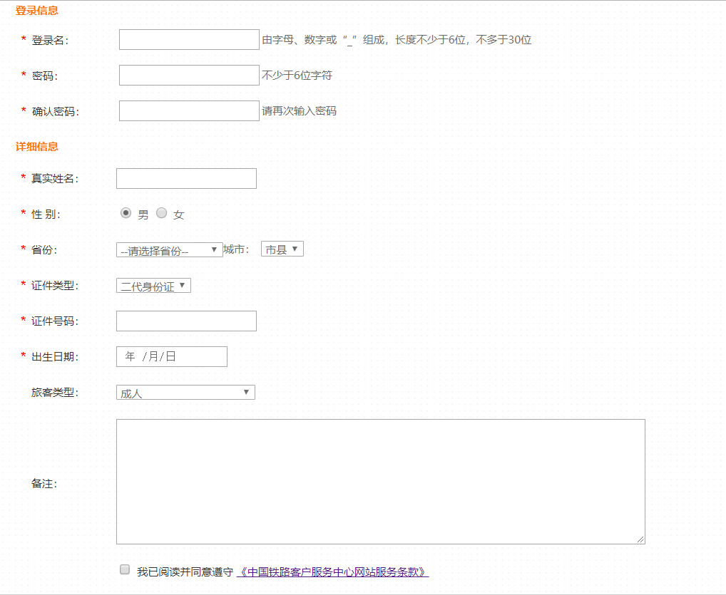 //这些待更新的数据:真实姓名 性 别 城市 证件类型 证件号码 出生日期 旅客类型 备注